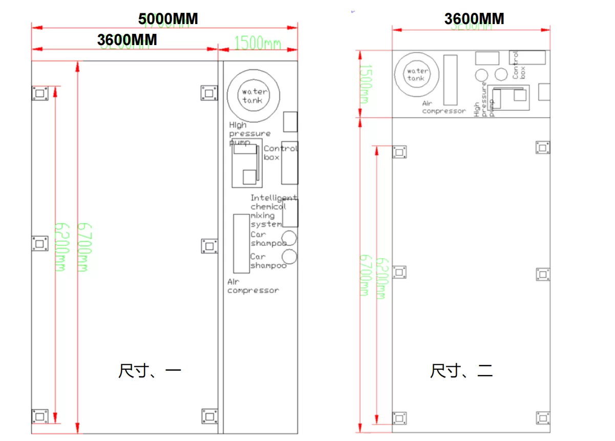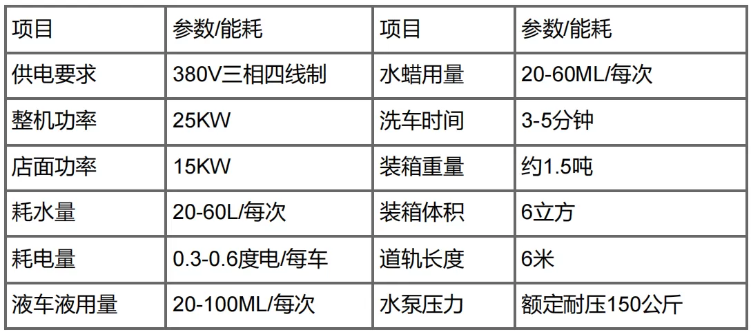 产品特点:1、采用二轴结构设计,结构简单,故障率低。采用国际上领先的嵌入式悬挂锁轨结构,安全稳定; 2、车猫AI智能模块设计,多功能集成体积更加小巧,维护安装更加方便; 3、德国品孚高压水泵,耐压可达150公斤,使用更放心; 4、13.2KW塑模移动风干,采用6个风机,风干效果比30KW风机效果更好,防锈静音。5、意大利品牌SSJ防水减速电机,通过水下1.5米100天运行测试,更耐用; 6、德国倍加福超声波和传感器,运行更加精准,防止发生碰撞。 7、防撞报警设计,定制电流模块防撞报警功能,使用更加放心; 8、带用远程故障检测功能,可实现远程故障排查、远程系统升级、实现微信和支付宝扫码支付24小时无人运营。还带有远程控制APP。 9、无人系统管理后台,可实现会员管理,会员卡充值,免费洗车券发放、优惠券发放、年月日营收统计,远程启动等功能。车猫S7参数能耗: